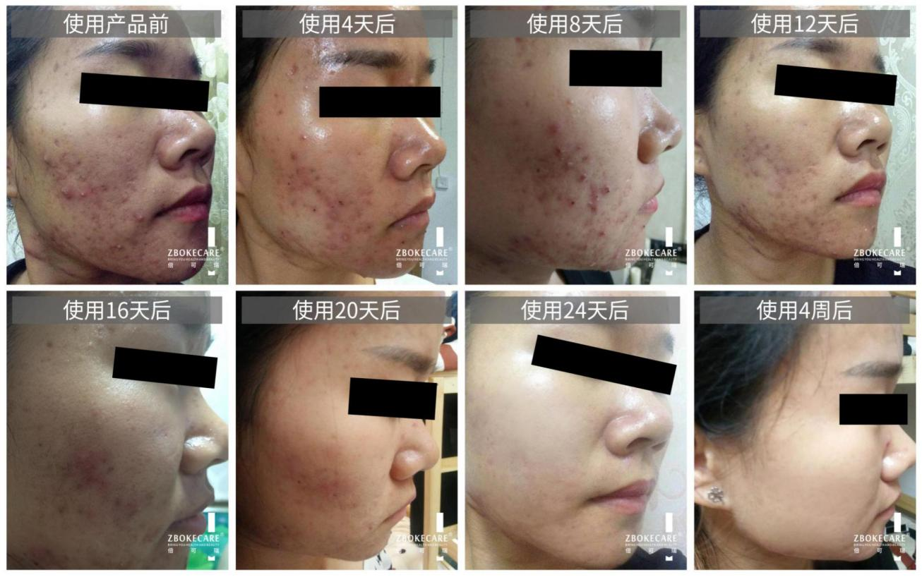使用后狀態(tài):使用4周后,痘痘紅腫消退,痘印痘痕完美修復(fù),不留痕跡,痘痘不再反復(fù)發(fā)作。
