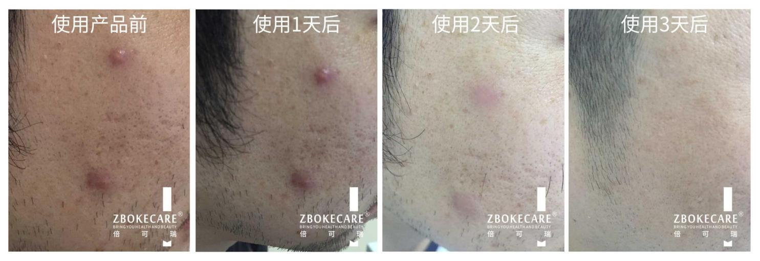 使用后狀態(tài):使用3天后,痘痘紅腫消退,不留痘印痘痕,完美修復(fù)