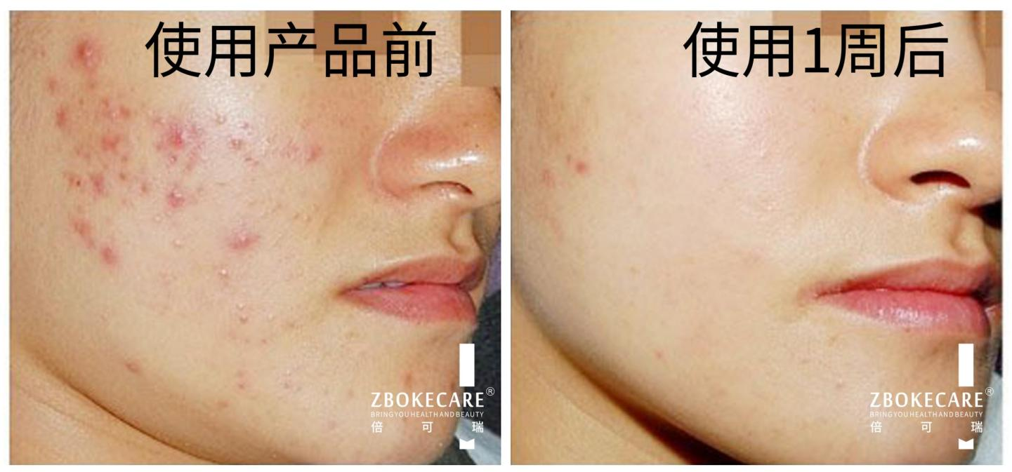 使用后狀態(tài):使用1周后,痘痘消退,痘印痕跡消除,皮膚變光滑、細(xì)膩,痘痘不再反復(fù)生長