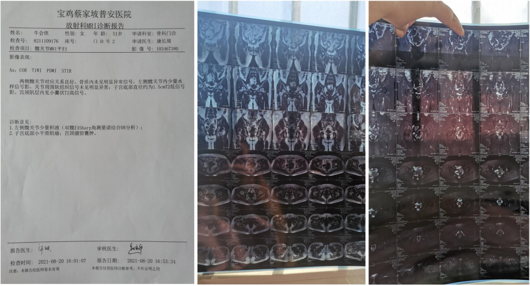 使用前:右側(cè)無(wú)菌性股骨頭壞死,髖關(guān)節(jié)積液。注射封閉針、口服消炎藥均無(wú)效果。