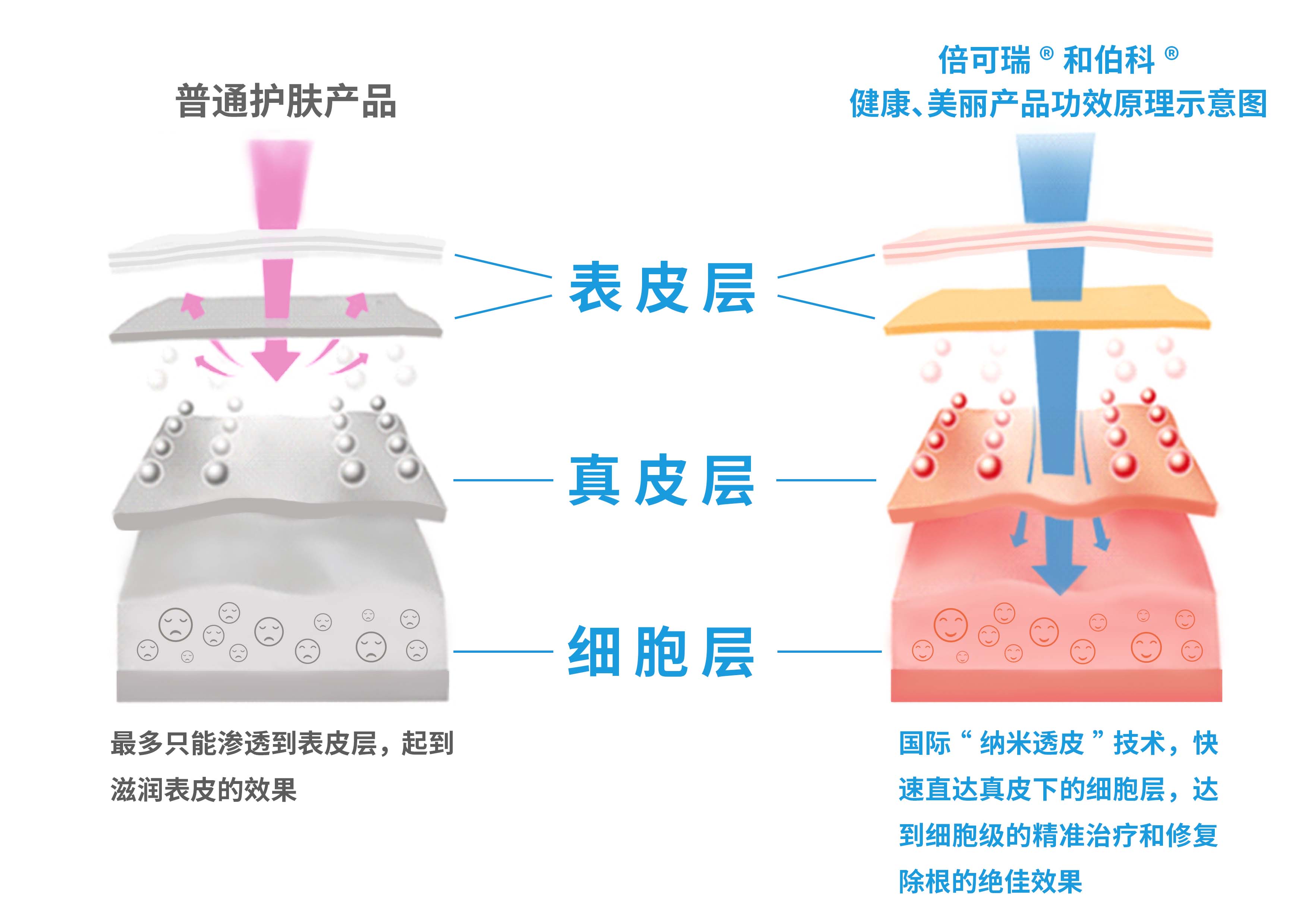 倍可瑞產(chǎn)品與普通護膚品吸收對比圖
