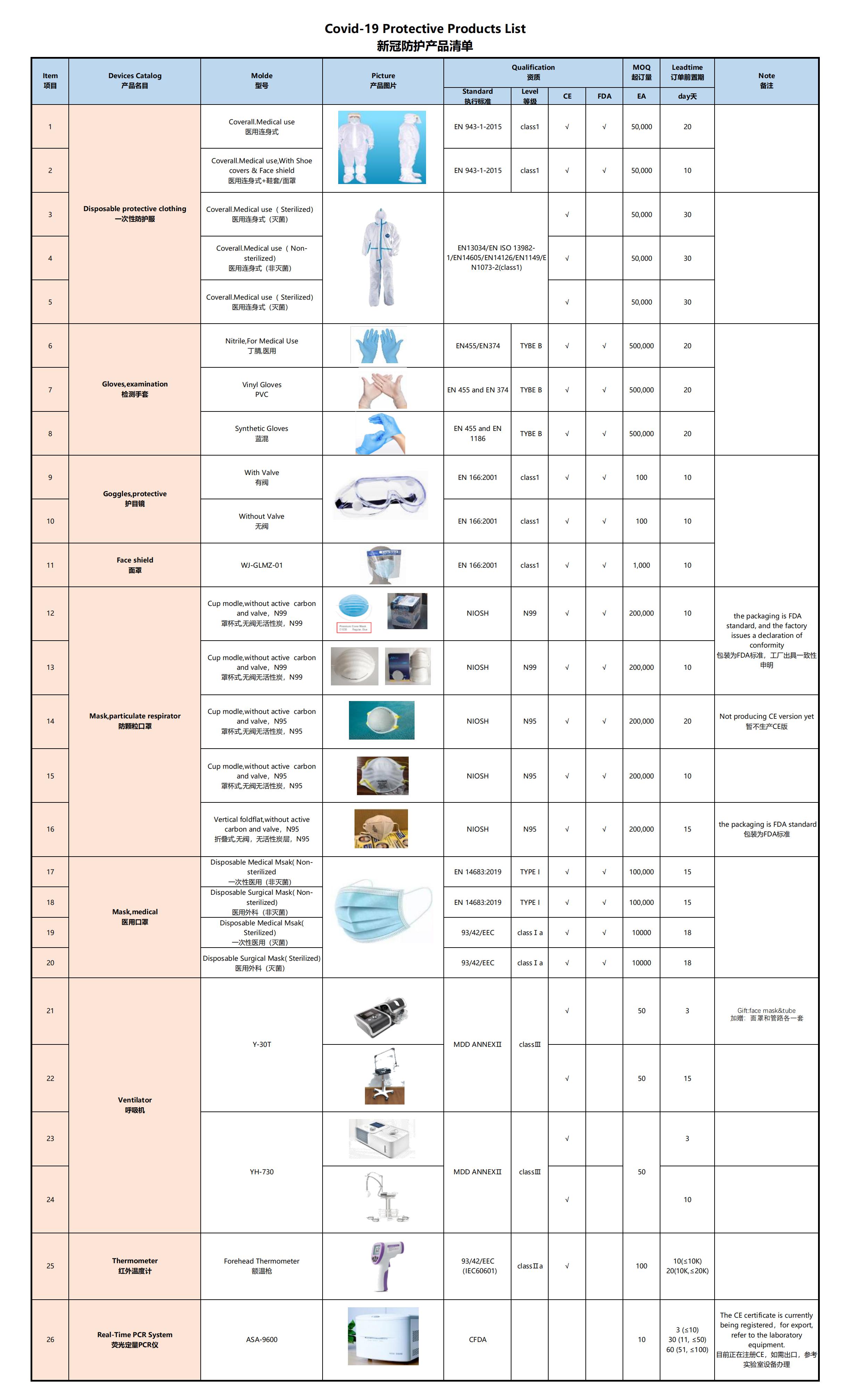 新冠防護(hù)產(chǎn)品清單